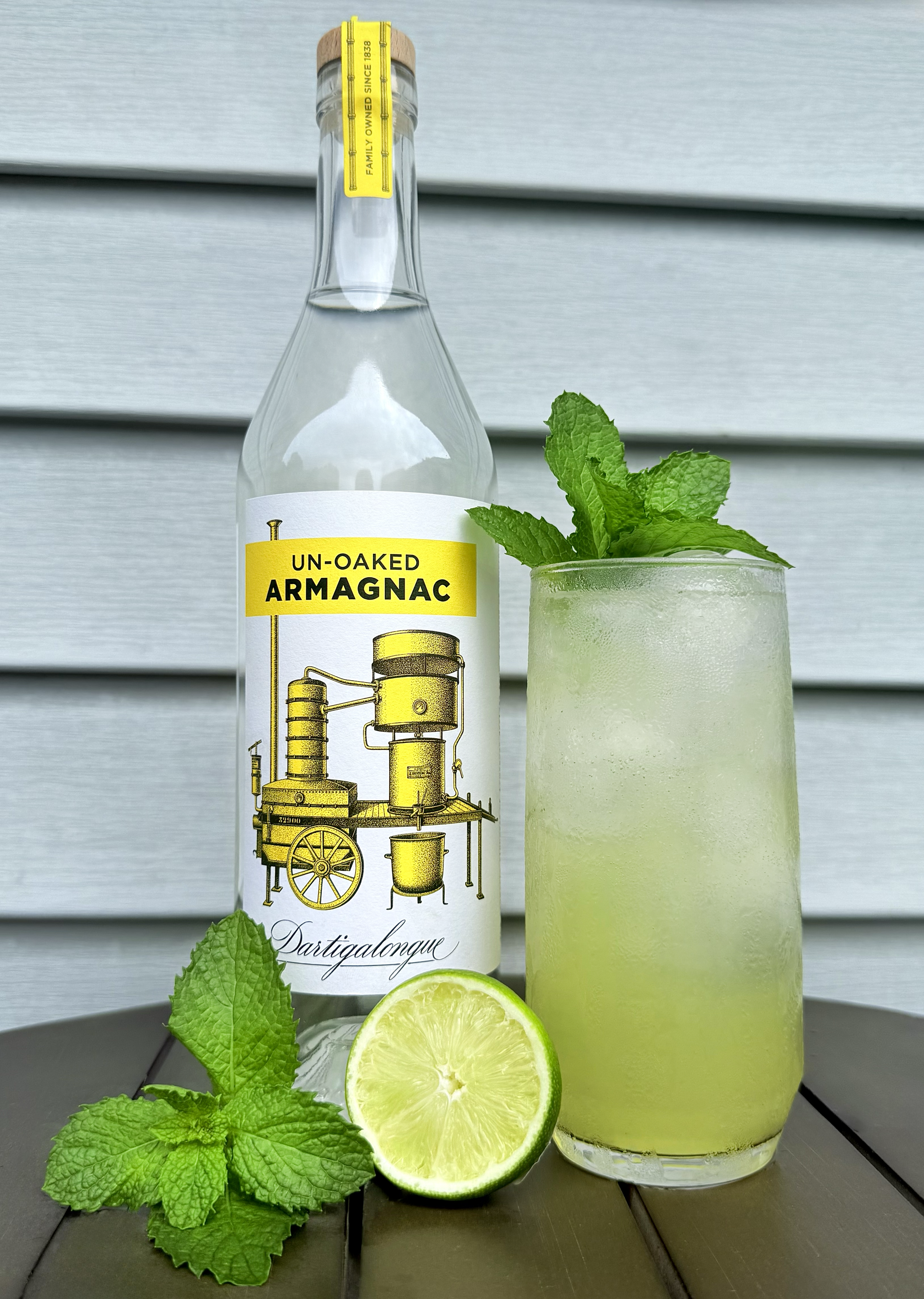 In a shaker, add lime juice, sugar, and mint leaves, then muddle. Add Blanche Armagnac and ice. Shake and double strain over ice, garnish with mint.