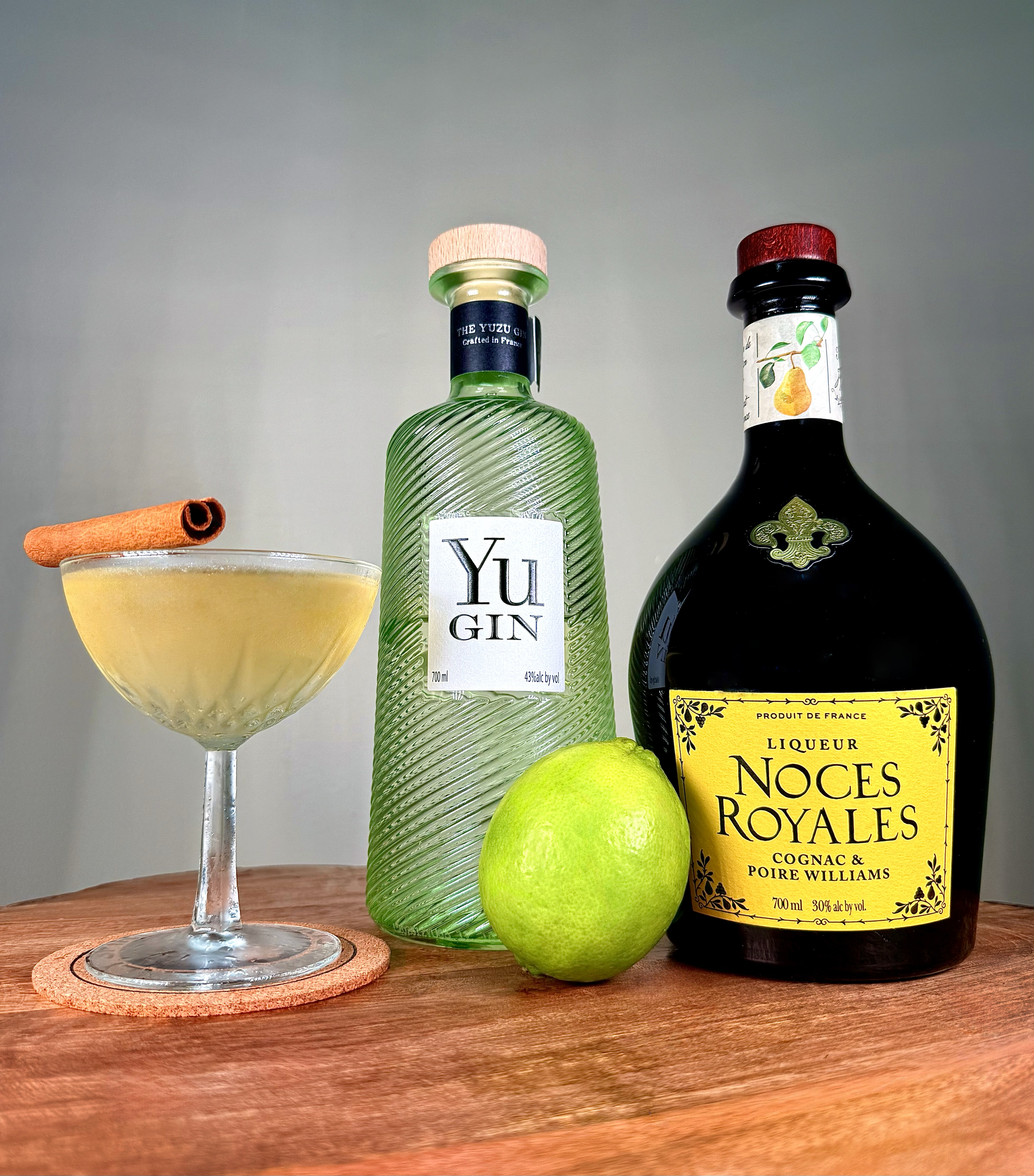 In a shaker filled with ice, add Yu Gin, Noces Royales and a squeeze of lime. Shake and strain into a chilled glass. Top off with champagne and add a cinnamon stick for garnish.